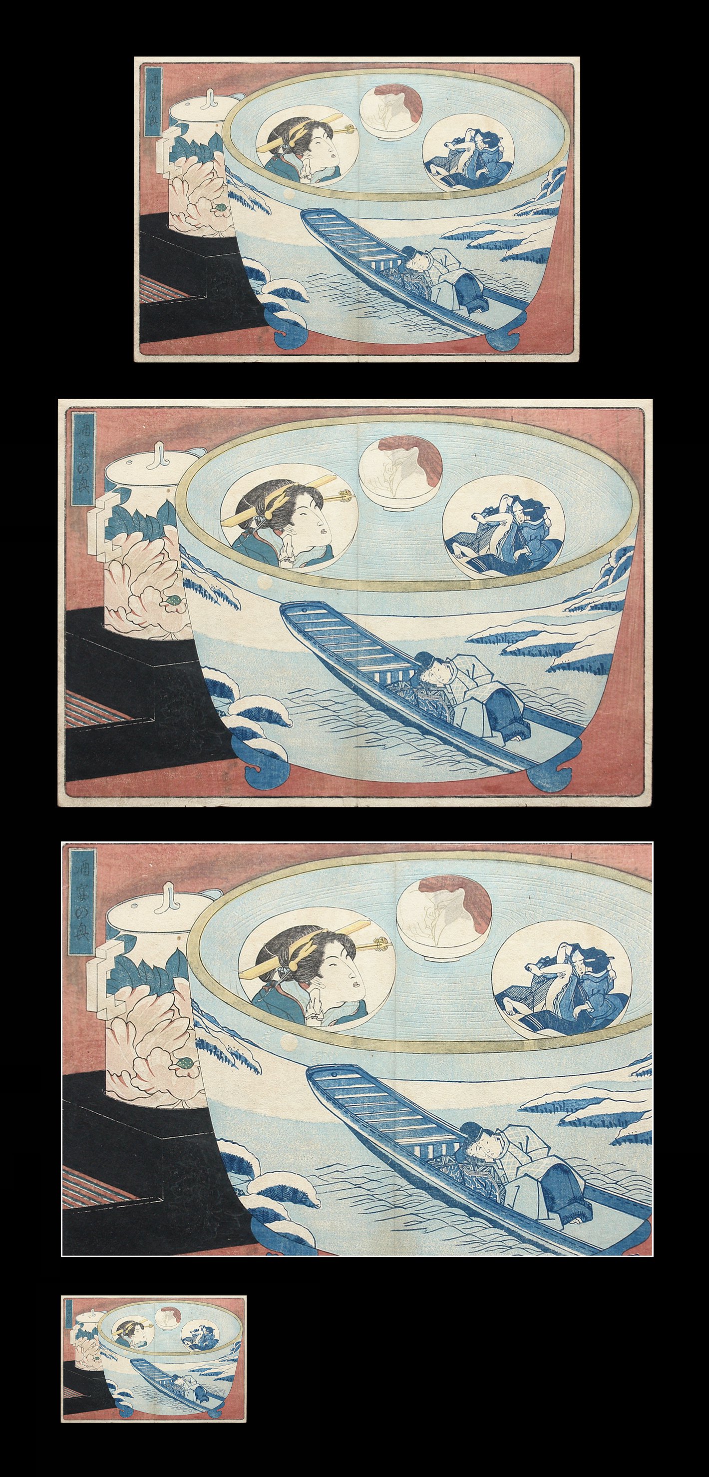 Utagawa Kuniyoshi – Enseki Zasshi – Aizuri-e – Porcelain Bowl With Erotic Motifs – c.1833. |