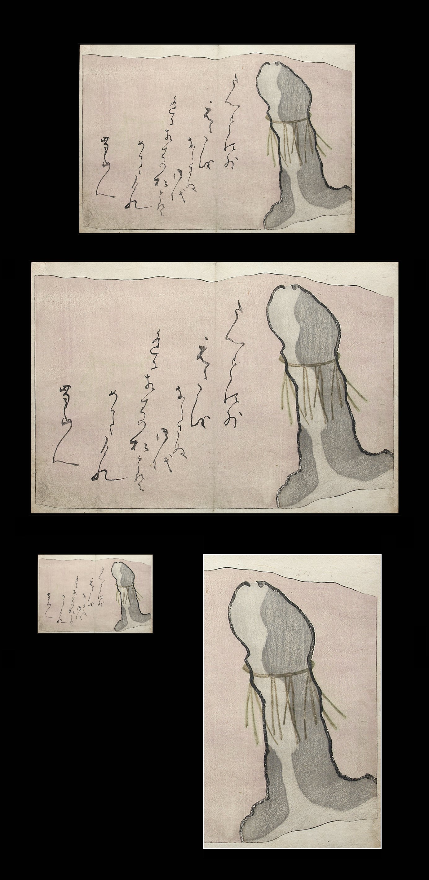 Utagawa Kuniyoshi – Enseki Zasshi – Wedded Rocks – Phallus Shaped Rock – c.1833. |