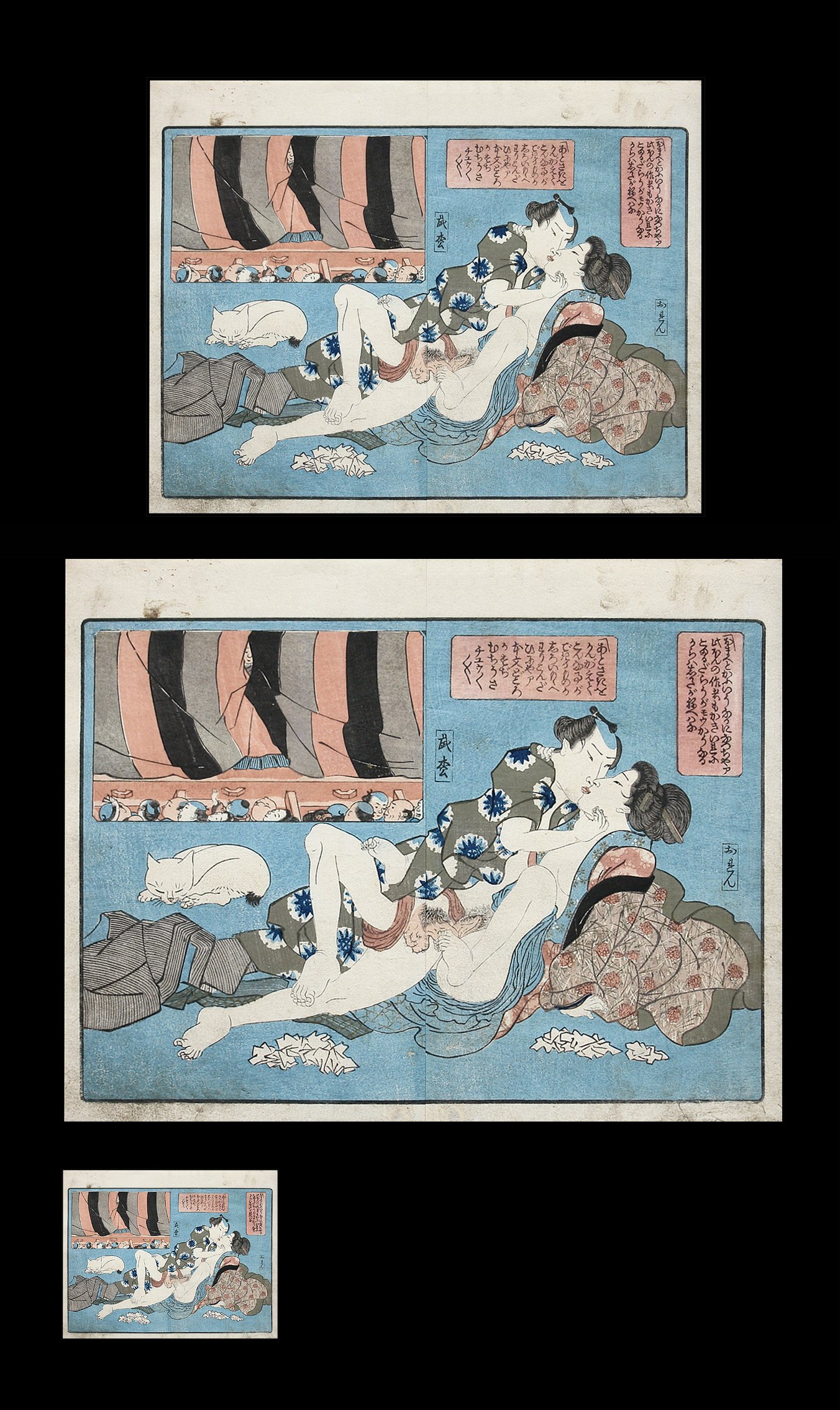 Shunga – Kuniyoshi – Sleeping Cat – Audience – c.1839. |