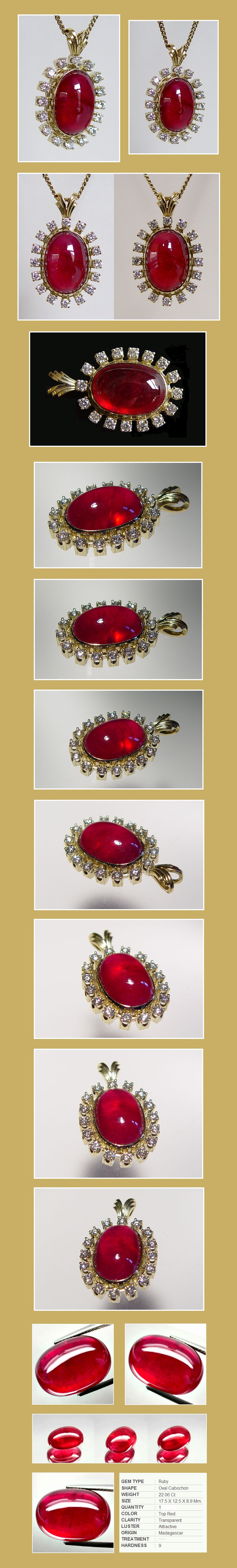 Gewicht van de Robijn 22.06 Karaat. Afmeting Hoogte: 17.5mm Breedte: 12.5mm Dikte: 8.9mm.