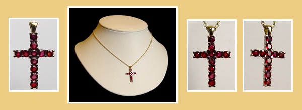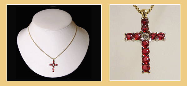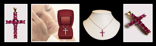 Zeer Hoge Kwaliteit 14K-18K.Gouden Kruisje met zes Ovaal Geslepen Natuurlijke Robijnen.