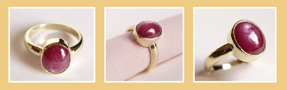 14K.GOUDEN RING MET EEN STER-ROBIJN.