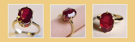 De Robijn is ovaal en facet geslepen, is zeer helder met insluitsels ( wat een garantie is van echtheid ).